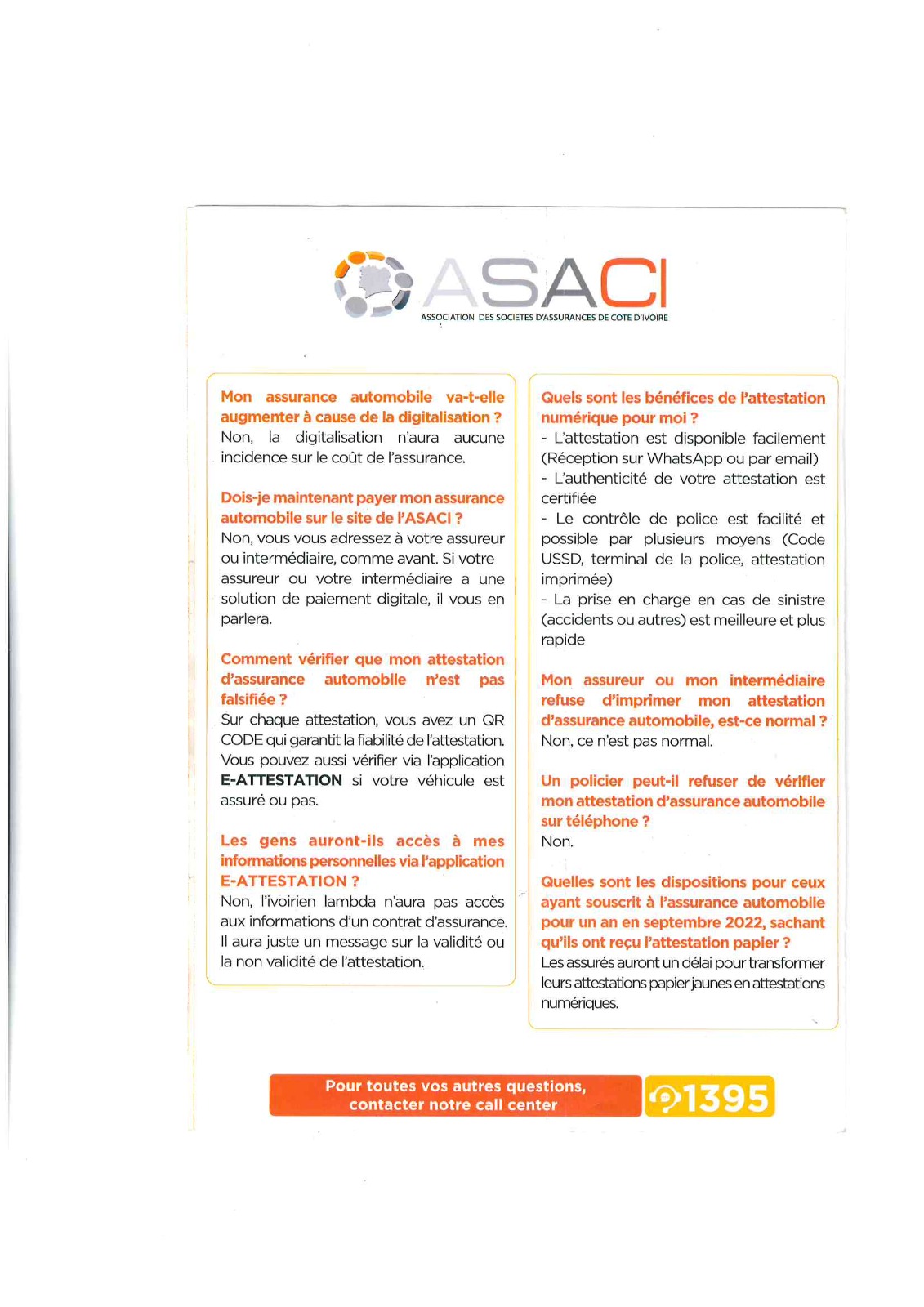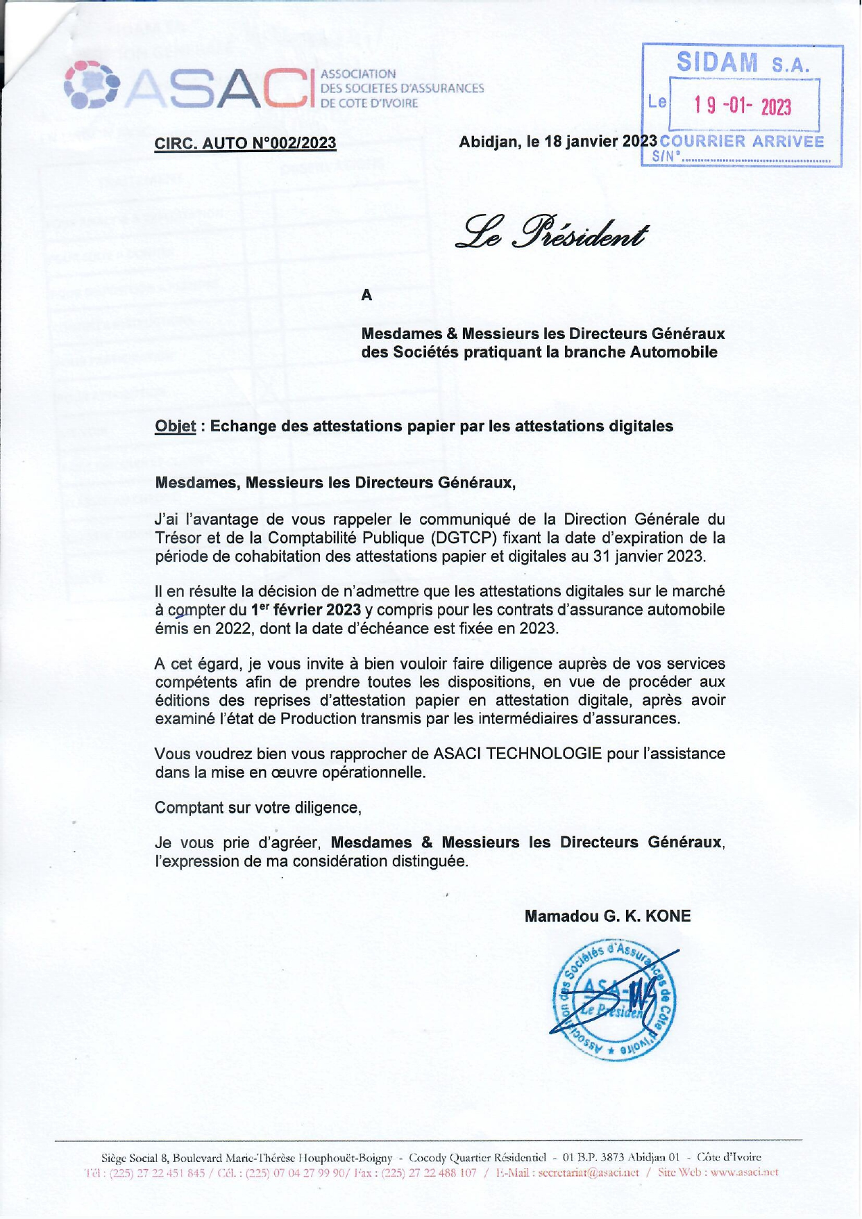 Communiqué de l'association des sociétés d'Assurances de Côte d'ivoire concernant le remplacement des Attestations papiers par les Attestations digitales